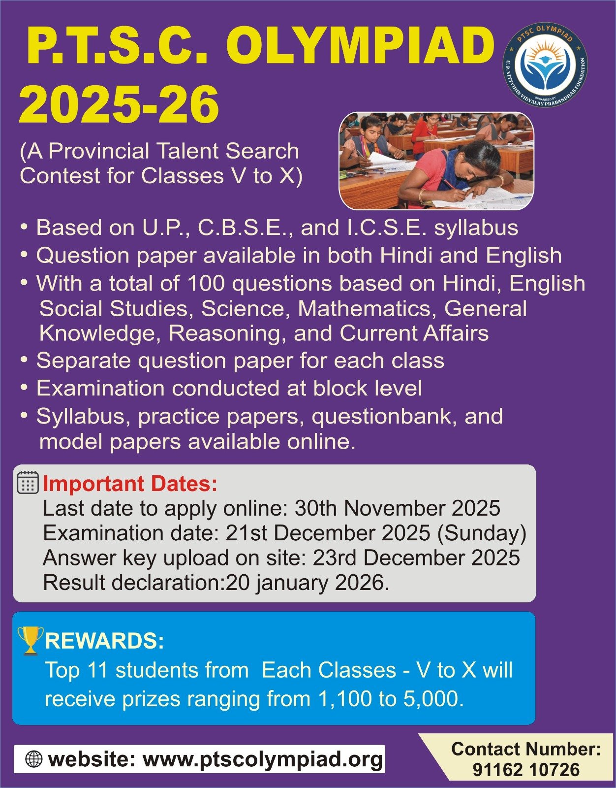 PTSC Olympiad is a state-level academic competition aimed at promoting knowledge, talent, and competitive spirit among students. The Olympiad encourages students to develop innovation, logical reasoning, and academic excellence through challenging exams.